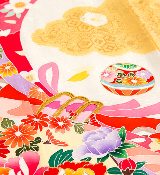 七五三衣装には、子供の無事の成長に対する感謝と祈りが込められ、その心は、文様や装飾にも表現されています。